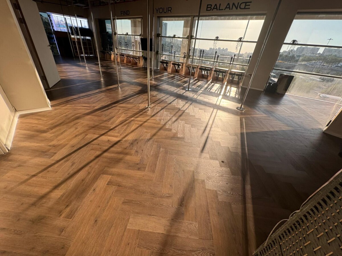 120 מ”ר ברוטו, אופן ספייס + מחיצות, משופץ (פרקט, מיזוג, מתזים).